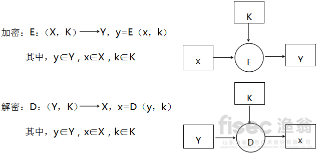 對稱加密/解密技術是加密與解密都用同一個密鑰的加密/解密技術。基本模型如下圖所示。明文X經密鑰K經過加密算法E成為密文Y。同理,密文Y經密鑰K經過解密算法D成為明文X。